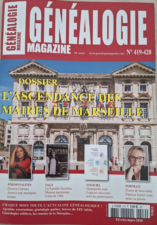 Il y a quelques semaines, Généalogie Magazine s’est intéressé à mon parcours et à mon métier de biographe. Vous pouvez découvrir l’intégralité de l’article dans le numéro 419-420 de Février- Mars 2026.